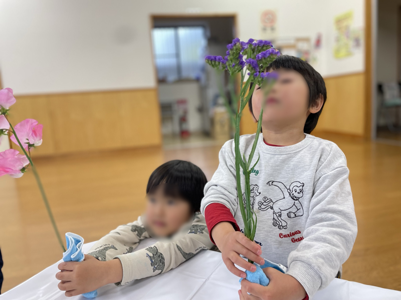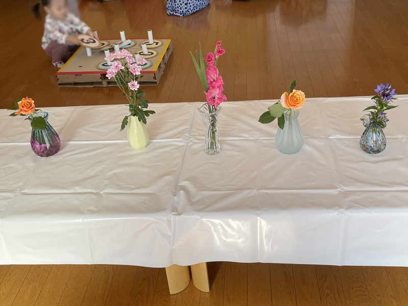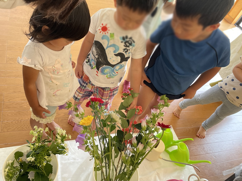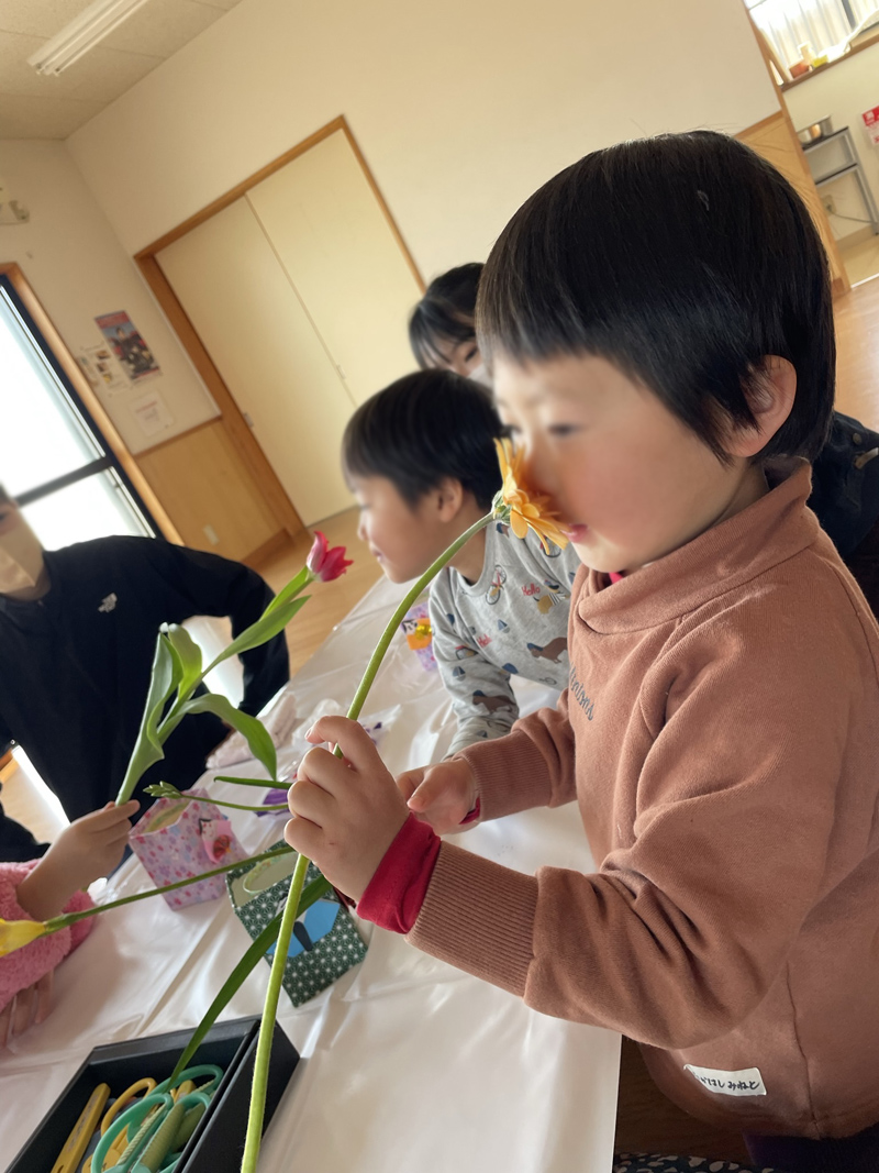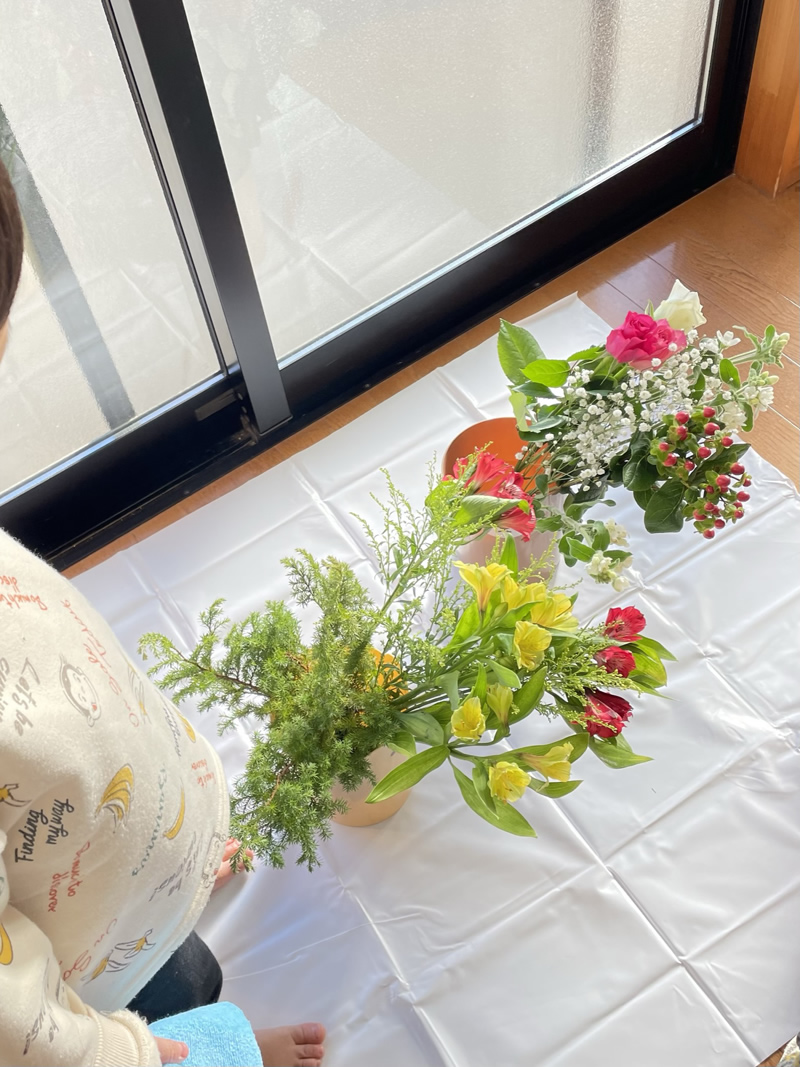 さまざまなお花を、見て触り観察し、自分なりに飾って(いけて)みる。