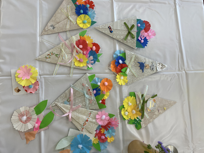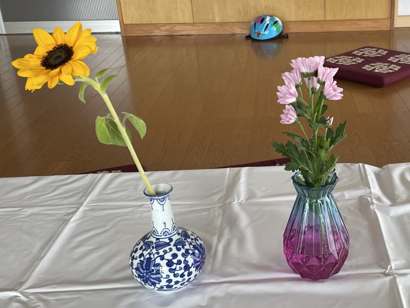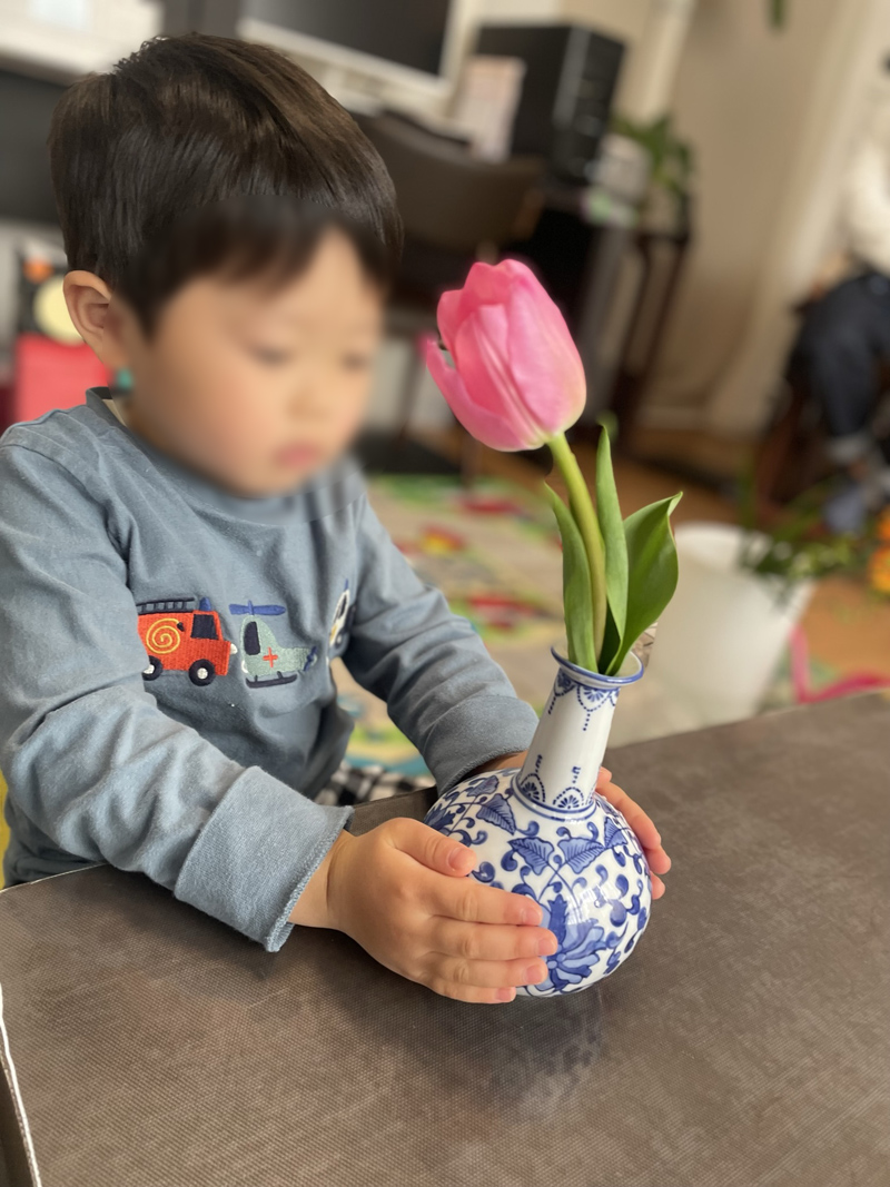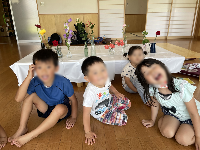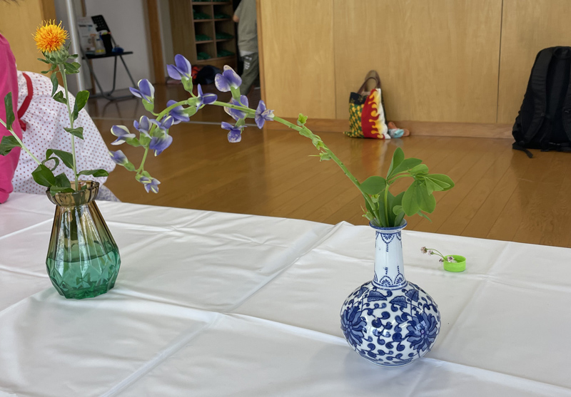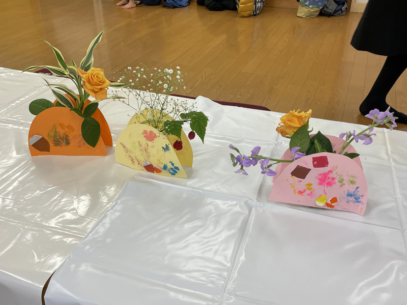 さまざまなお花を、見て触り観察し、自分なりに飾って(いけて)みる。