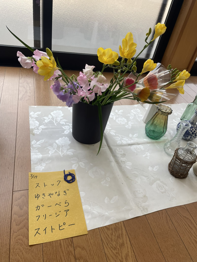 | 持ち物 | ハンドタオル、生花用はさみ(貸出アリ) お飲み物(おやつが出るときがあります) |